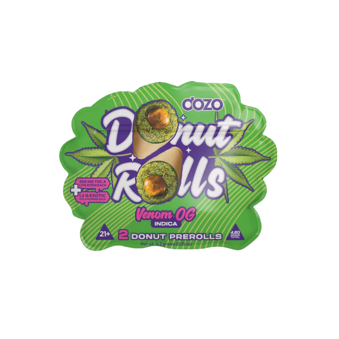 Dozo Donut Rolls 4.2GM Prerolls 2CT/PK 5PK delivers a premium smoking experience with expertly crafted prerolls packed with high-quality cannabis flower. Each pack contains five sets of two prerolls, totaling 4.2 grams, designed for smooth, flavorful draws and consistent potency. These prerolls come in a variety of popular hybrid, indica, and sativa strains, allowing users to select their preferred effect and flavor profile. Ideal for both casual and seasoned consumers, Dozo Donut Rolls offer convenience without compromising quality. They are perfect for sharing or enjoying on the go, providing a balanced and enjoyable cannabis experience every time.