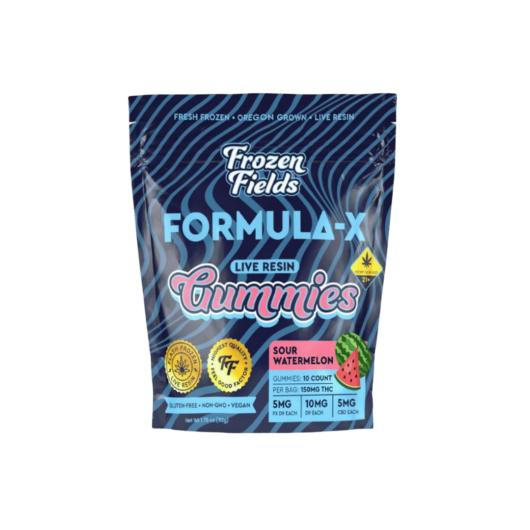 Elevate your edible experience with Frozen Fields Formula-X THC Gummies, a premium option for those seeking fast-acting, hemp-derived THC in a delicious, fruit-forward form. Each gummy contains 15MG of potent Formula-X live resin THC, carefully crafted for vivid, euphoric effects with zero cannabis aftertaste. Perfectly portioned and Farm Bill compliant, these gummies are a flavorful and discreet way to unwind.