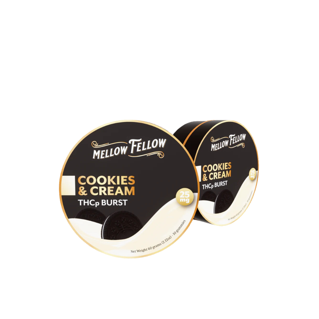 MELLOW FELLOW THCP Bursts 25MG Gummies are a delicious and convenient way to experience the effects of THCP in a controlled dosage. Each gummy contains 2.5mg of THCP, designed to provide a subtle yet potent effect that supports relaxation, mood enhancement, and overall well-being. The pack includes 10 gummies, each bursting with rich, dessert-inspired flavors for a tasty experience.