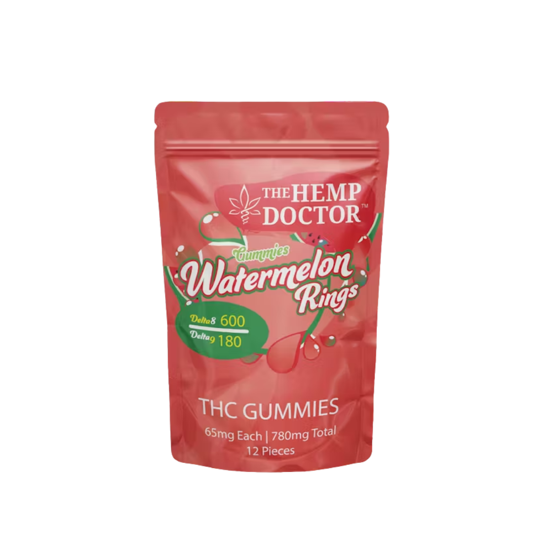 The Hemp Doctor D8 D9 THC 780MG Gummies are a powerful and flavorful way to enjoy a balanced cannabinoid experience. Each pouch contains 12 gummies, with each gummy delivering a potent 65mg blend of Delta-8 and Delta-9 THC. These gummies are ideal for those seeking a convenient, tasty, and discreet option for THC consumption. Designed to offer consistent dosing and enjoyable effects, they make a reliable addition to any cannabinoid routine. Perfect for recreational or wellness use, they combine high potency with delicious flavors. Their compact packaging is travel-friendly and resealable for on-the-go ease.