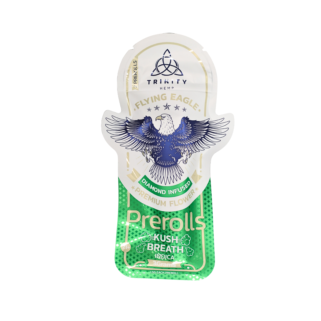 Trinity Hemp Flying Eagle 3GM Diamond Infused Pre-Rolls deliver a potent and flavorful cannabis experience in a convenient pre-roll format. Each pre-roll is infused with cannabis diamonds for enhanced effects and smooth, rich flavor. Designed for both casual users and seasoned enthusiasts, these pre-rolls provide a consistent and enjoyable experience. Each pack contains two 1.5GM pre-rolls, offering a total of 3GM per pack. With a variety of hybrid, indica, and sativa strains, thereÕs a perfect option for every mood and preference.